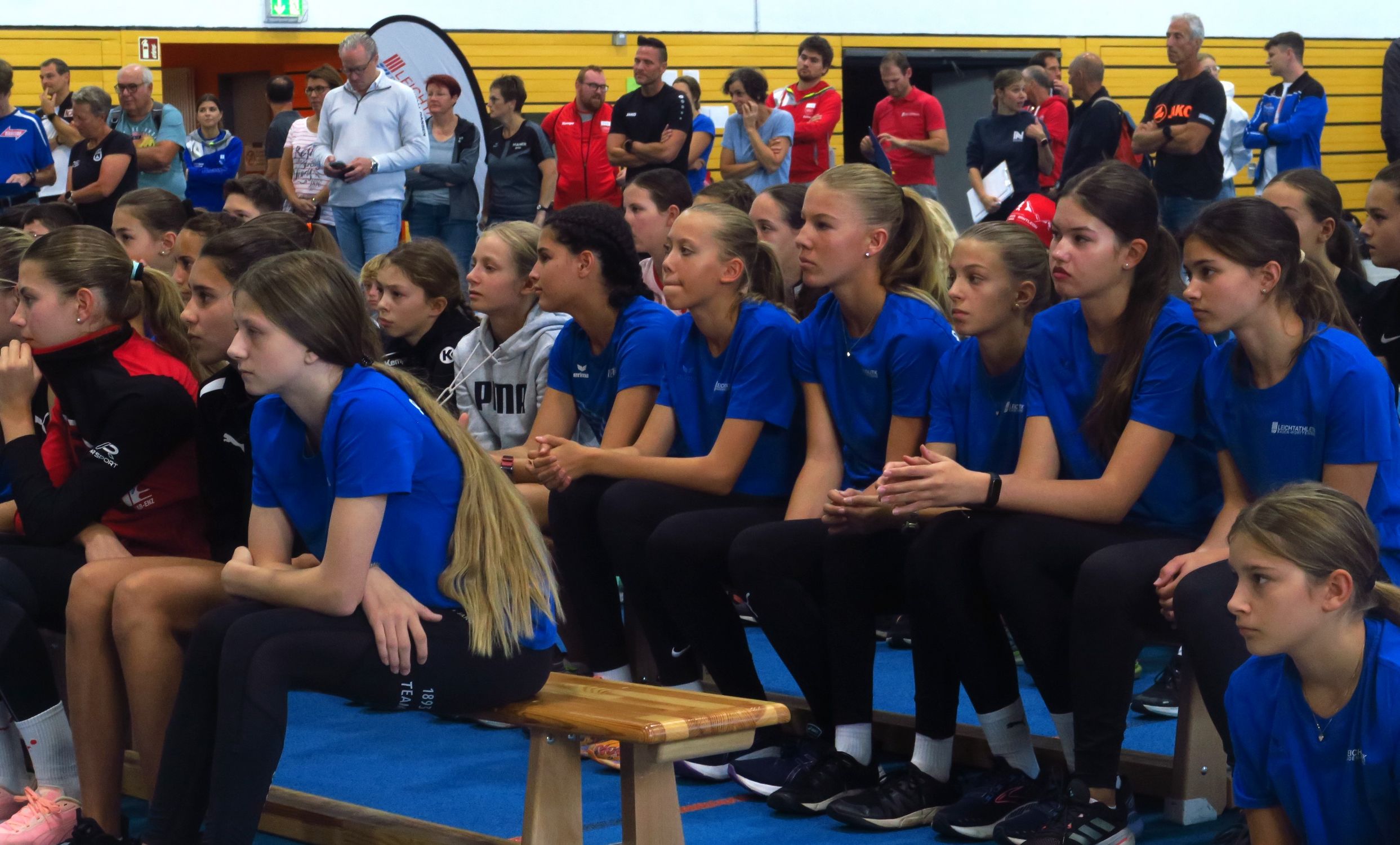 86 Jugendliche aus den württembergischen Vereine nutzten die Chance, das Trainingsumfeld des Bundesstützpunktes Stuttgart kennen zu lernen und sich vielleicht für die Sichtung zum Talentkader im November empfehlen zu können. Erste Begegnungen mit dem Spitzensport gab es schon beim Aufwärmen: Nach der Begrüßung durch Landestrainerin Jennifer Hartmann übernahm U20-Vize-Europameisterin Johanna Göring zusammen mit Ogechi Nathan das Kommando und sorgte dafür, dass die Jugendlichen gut vorbereitet in ihren Test-Sechskampf ziehen konnten. Das WLV-Talentsportfest wurde mit Unterstützung der SportRegion Stuttgart durchgeführt.