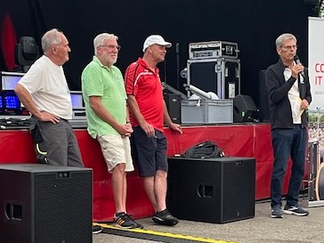 Das Jubiläum „25. Jahre Seefestcrosslauf“ konnte dann am 06.07.2024 gefeiert werden. Die Ehrung durch den WLV wurde vom Vorsitzenden des Fachausschusses Freizeit-, Lauf-, Gesundheitssport – Eberhard Mauser im voll besetzten Festzelt vor den Siegerehrungen vorgenommen. Sehr erfreuliche war, dass neben dem jetzt aktuellen Verantwortlichen für den Lauf, Lothar Trittenbacher, auch seine Vorgänger – Karl-Heinz Fohrer und Rudi Späth - anwesend waren. Die lassen es sich nicht nehmen, auch heute und in Zukunft noch in der Organisation mitzuwirken. Erfreulicherweise waren bei den Teilnehmer:innen der Läufe alle Altersklassen vertreten. Mauser legte es den Veranstaltern ans Herz zu überlegen, ob im nächsten Jahr nicht auch ein Kids-Marathon Teil des Seelaufcrossfestes sein kann.