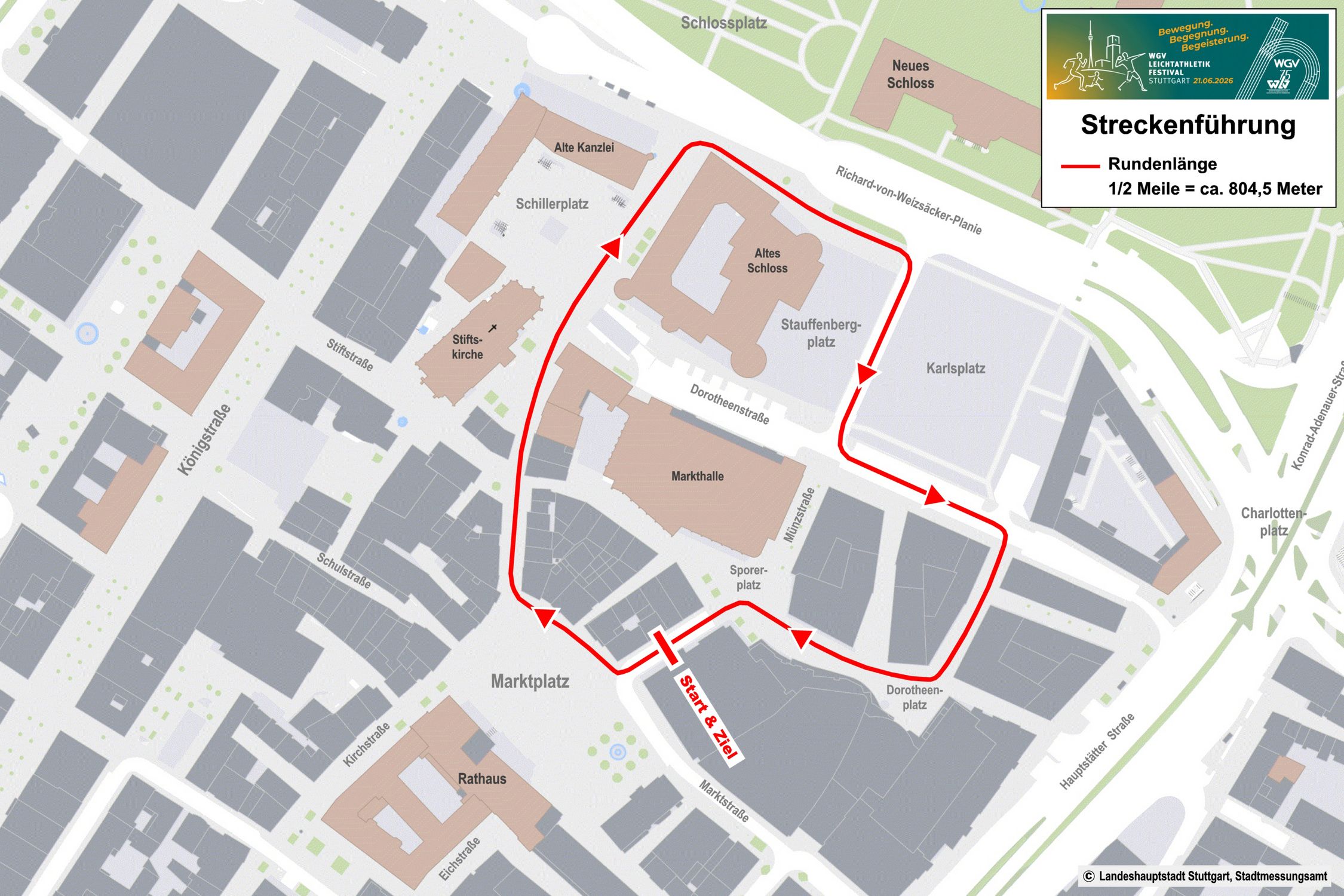 Start und Ziel aller Wettbewerbe ist der Stuttgarter Marktplatz – mitten im Herzen der Stadt und direkt im Zentrum des Festivalgeschehens. Von dort aus führt die Strecke durch die Innenstadt und verbinden sportliche Bewegung mit besonderer Atmosphäre.