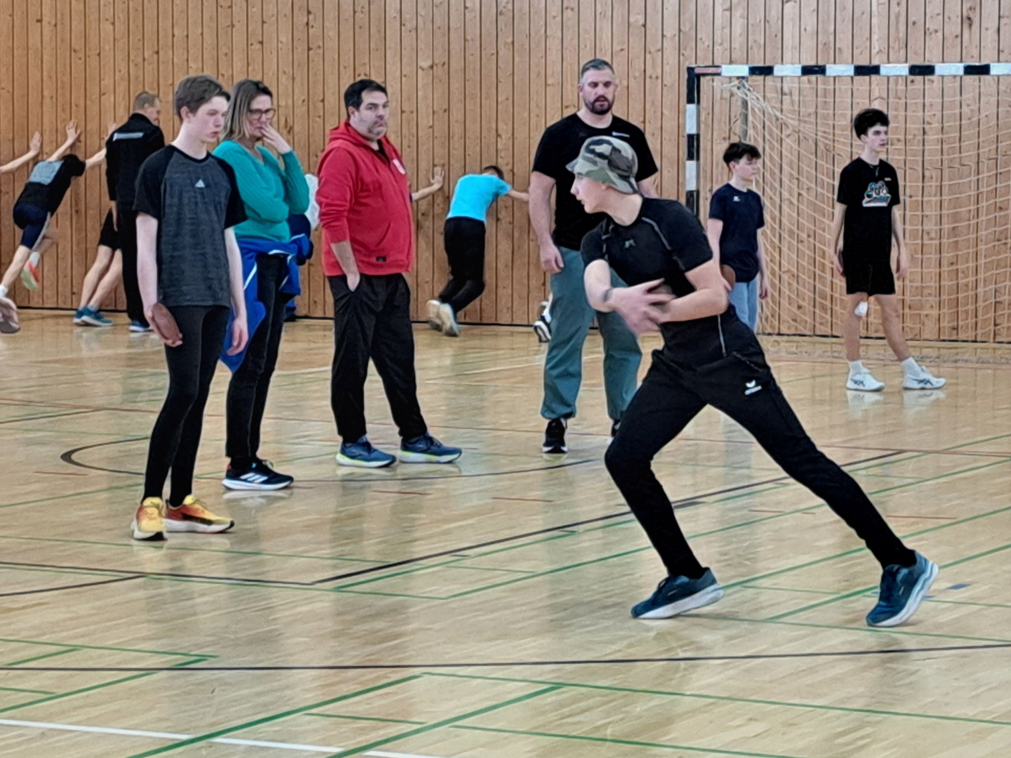 Der richtige Fußaufsatz, um sprinten, abspringen oder richtig drehen zu können, war immer wieder das Thema für die 27 jungen Talente, die von Regina und Christoph Geissler, Luca Mazzei, David Wrobel und Christian Hummel betreut wurden. Und dann musste man ja frühmorgens noch durch den leicht vereisten Rasen rund um die Sportschule marschieren, um danach mit gut durchbluteten Füßen Gymnastik zu betreiben oder Murmeln zu transportieren …