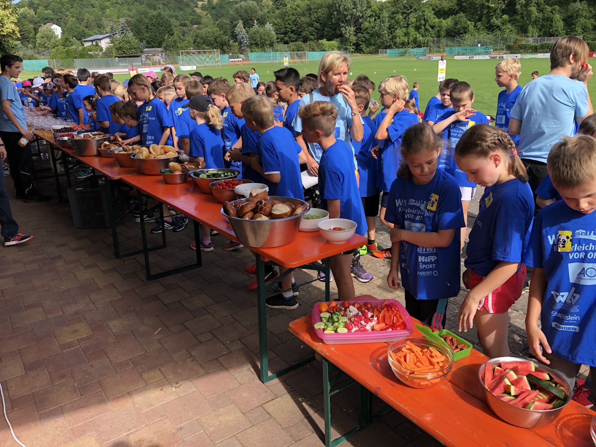 Die Eltern der Johann-Adam-Möhler-Grundschule sorgten mit reichlich mitgebrachtem Laugengebäck, Obst und Gemüse dafür, dass die Kinder in den zwei Pausen wieder zu Kräften kommen konnten. Ein Renner waren auch die gesponserten Fruchtquetschen von Hipp und Gummibärchen von Bürger in Maultaschenform.